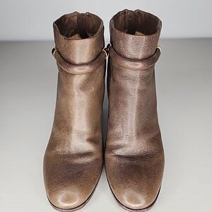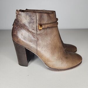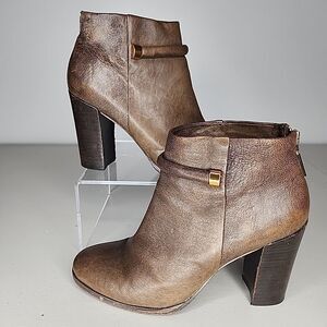 Anthropologie Aerin Fuller Brown Leather Block Heel Boot Zip Up Womens Size 9