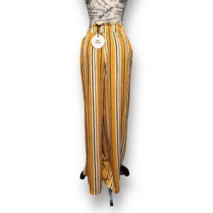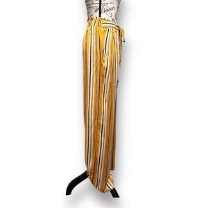Anthropologie After Market Mustard Striped Wide Leg Pants Tie Waist Boho Resort