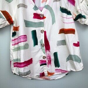 Anthropologie Aimee Clarke Art Brushstroke Button Back Puff Sleeve Top Womens XS