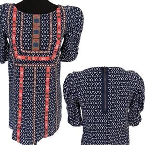 Anthropologie Akemi + Kim Blue Mini Dress Top Hippie Boho Embroidery Size Medium