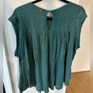 Like new condition. The Akemi + Kin Smocked Swing Top in green is a stylish and comfortable blouse that was previously available at Anthropologie. This top features a smocked bodice and a flowy, swing silhouette, making it a versatile addition to any wardrobe.