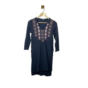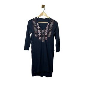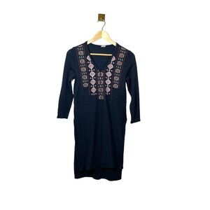 Anthropologie Akemi Kin Embroidered Aztec Slit Tunic Dress in Navy Size XS