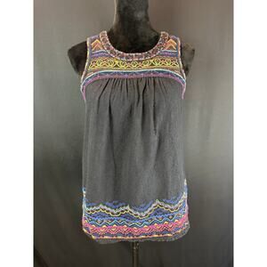 Anthropologie Akemi + Kin Embroidered Boho Abstract Tank Top, Size 4
