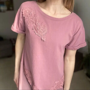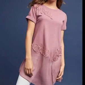 Anthropologie Akemi & Kin Embroidered Mauve Tunic Top