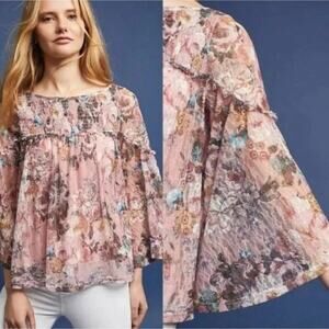 Anthropologie Akemi Kin Fairy Blouse Top SZ Large Cottagecore Sheer Floral Pink