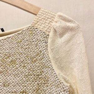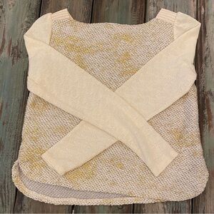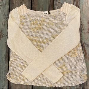 Anthropologie Akemi & Kin Foil Print Pointelle Pullover Cream Gold Sweater XXS