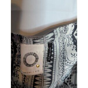 Anthropologie Akemi & Kin Geometric Babydoll Tank Top is a stylish and comfortable garment made of Modal and Cotton materials. It features a geometric pattern, V-neckline, and wide straps. The pullover closure and regular fit make it easy to wear and suitable for various occasions such as travel, party/cocktail, casual, and workwear. The tank top is machine washable, easy to care for, and breathable. It is a perfect choice for summer and spring seasons, and its black & white color scheme is a classic look that never goes out of style.