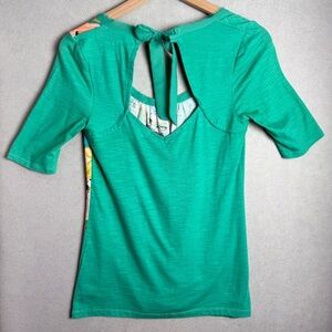 Anthropologie Akemi + Kin Green Floral Design Top Keyhole Tie Back Neck Size XS