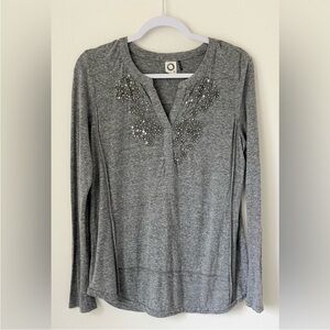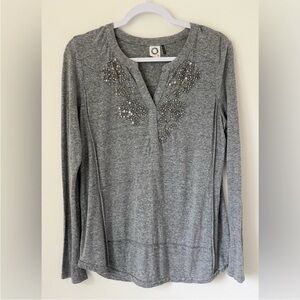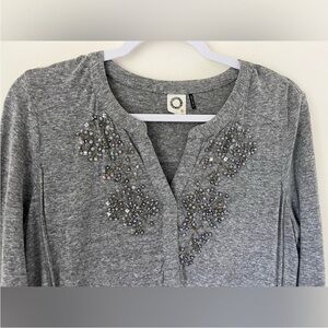 Anthropologie Akemi + Kin Linen Blend Embroidered V Neck Long Sleeve Top