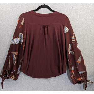 Anthropologie Akemi Kin Marbelle Umbrella Print Top Long Sleeve Small Brown Boho
