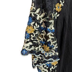Anthropologie Akemi + Kin Metallic Floral Embroidered Lace Top Women Small Black