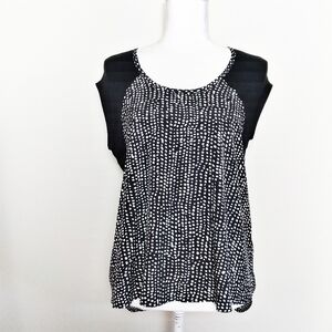 Anthropologie Akemi + Kin micro polka dot mixed print contrast short sleeve black and white jersey knit top.