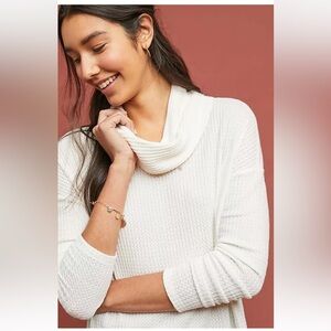 Anthropologie Akemi + Kin Morbier Oversized Cowl Neck Waffle Tunic Top Medium