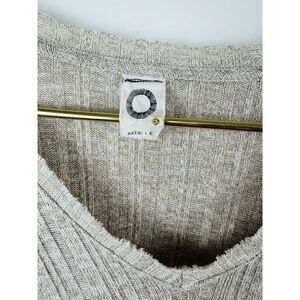 Anthropologie Akemi + Kin Oatmeal Color V-Neck Top Long Sleeve Ribbed Tunic. Condition is Pre-owned.