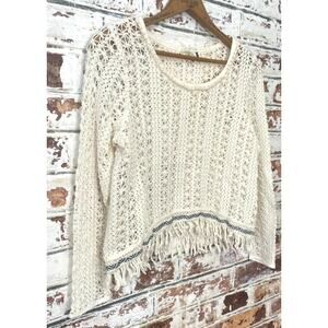 Anthropologie Akemi + Kin Open Knit Crochet Fringe Boho Franja Pullover Blouse