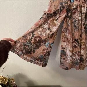 In good preowned condition. Sheer floral print lace. Wide sleeves.