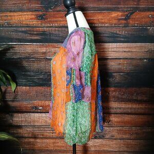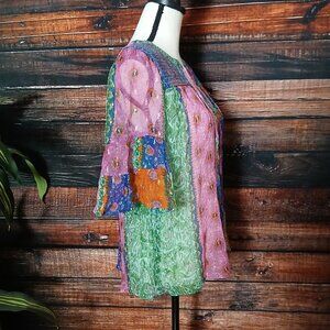 Anthropologie Akemi + Kin Peasant Top S Sheer Lyocell Bell Sleeve Patchwork