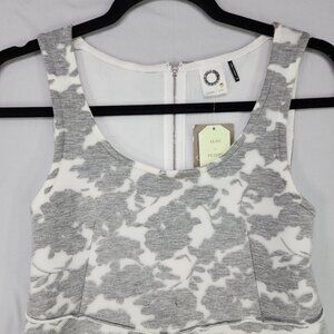Anthropologie Akemi + Kin Peplum Top Size XS Floral Scoop Neck Mesh Overlay