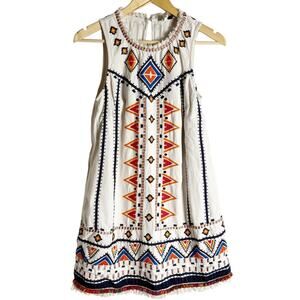 Anthropologie Akemi + Kin Reagan White Boho Embroidered Shift Mini Dress Size 0