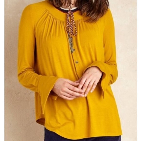 Anthropologie Akemi + Kin Soft Knit Jersey Goldie Blouse Yellow Button Up