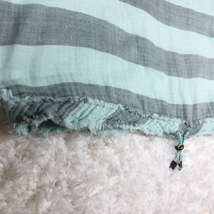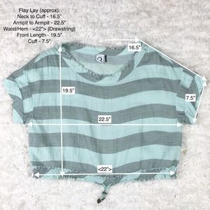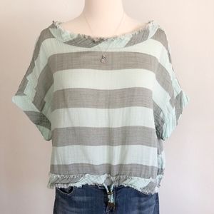 Anthropologie Akemi + Kim Striped Oversized Cropped Top with Drawstring waist and fray neckline and hem, Size Medium
