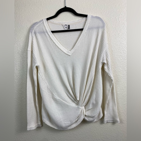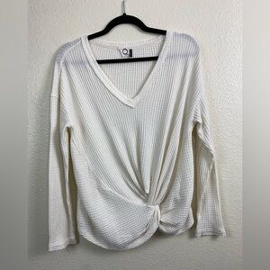 Anthropologie Akemi + Kin Thermal waffle knit Ivory Long Sleeve Sweater Medium