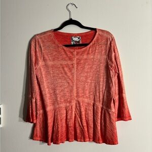 Anthropologie Akemi + Kin Top Blouse Orange Tie Dye Ombre 3/4 sleeve Ruffle