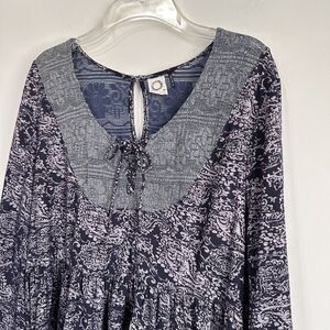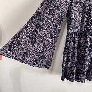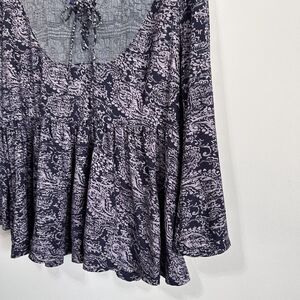Anthropologie Akemi Kin Top M Marcella Lace Up Scoop Neck Boho Bell Sleeve