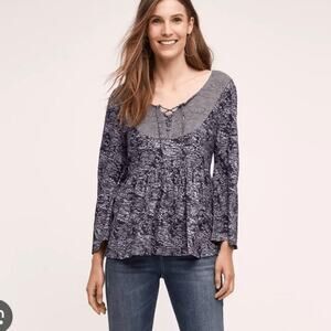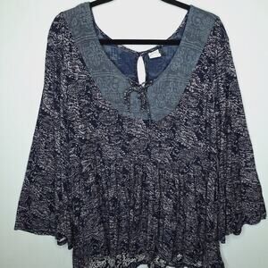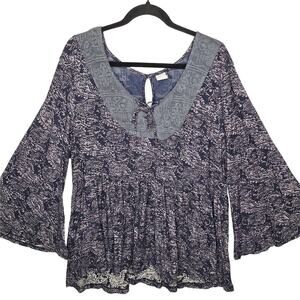 Anthropologie Akemi + Kin Top Marcella Damask Paisley Boho Peasant XL Bell Lace