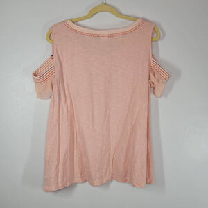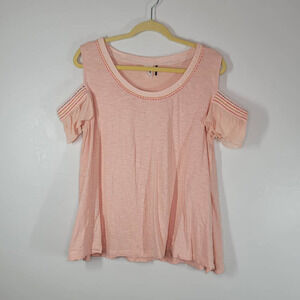 Anthropologie Akemi & Kin Top Size L Salma Cold Shoulder Embroidered Pink Cotton