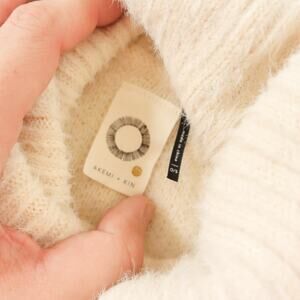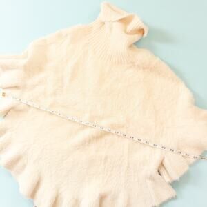 Features: Creamy off white turtleneck popover ruffle trim poncho sweater