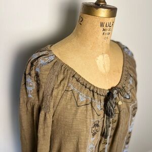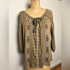 Super comfy and cute Anthropologie peasant top with gold sequin embellishments.