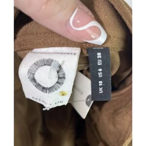 Anthropologie Akemi + Kin Skirt Tan Faux Suede Skirt Swing Belted Pleated Size 6