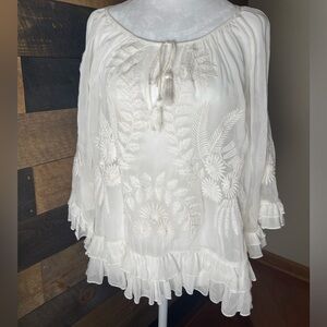 Anthropologie Akemi and Kin Embroidered White Sheer Blouse M