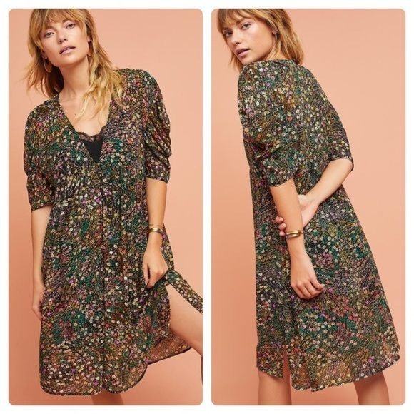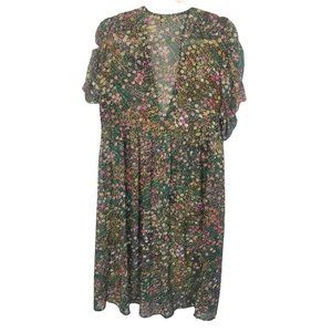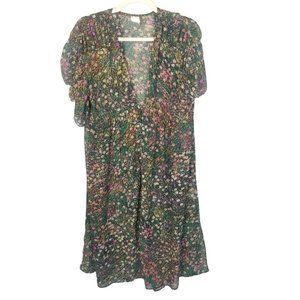 Anthropologie Akemi+Kin Womens XS Green Floral Valencia Dress Sheer Button Down