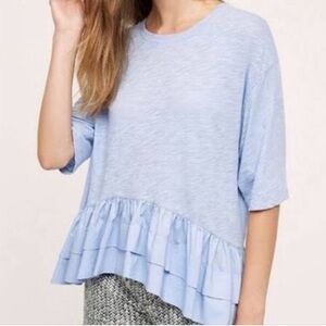 Anthropologie Akemi+Kin blue slub cotton ruffle hem short sleeve tee size small
