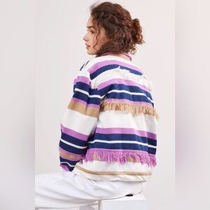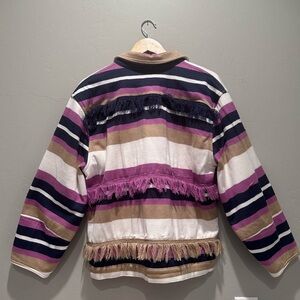 Anthropologie Alexandra Bueno Colorful Striped Fringed Jacket Size Large