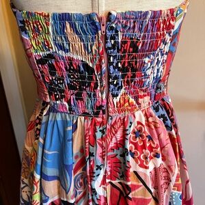 Beautiful Anthropologie Alexandra Farmer painterly midi dress. Bold strapless dress with a vibrant mix of patterns. This dress has a bit of stretch in the bust and also has pockets. No flaws I could fine, it is just missing the detachable straps. This comes from a smoke free, pet friendly home.