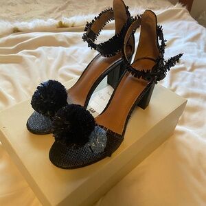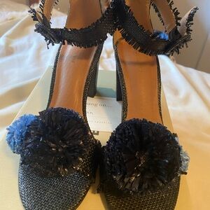 Anthropologie All Black Black and Blue Raffia Heels 38/8