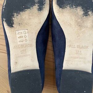 Anthropologie All Black Suede Navy and Lavender Loafer Size 7.5