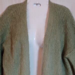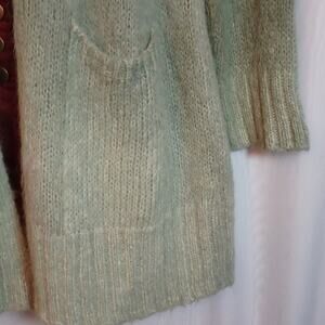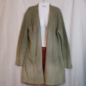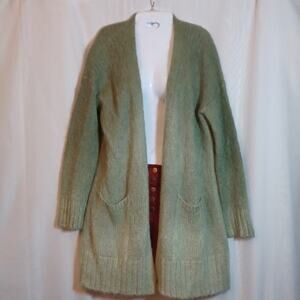 Anthropologie Alpaca & Merino Wool Blend Two Tone Green Cardigan Open Front Sweater. Long Sleeve,