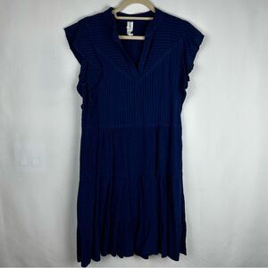 Anthropologie Amadi Blue Linen Blend Tiered Ruffle Sleeve Dress with Pockets