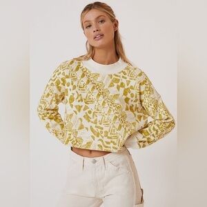Anthropologie Amadi Cropped Abstract Print Sweatshirt