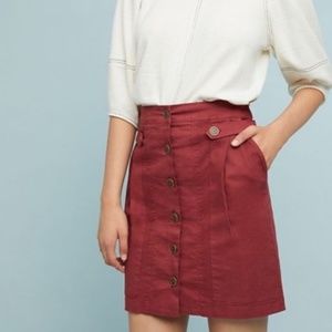 Anthropologie Amadi Red Buttoned Utility Skirt