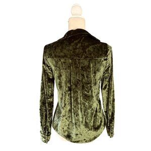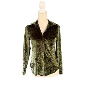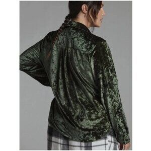 Anthropologie Amadi Velvet Button Down Shirt moss green XS crushed velvet top