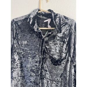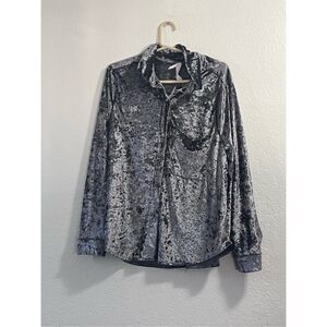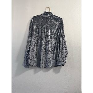 Anthropologie Amadi Velvet Buttondown Top Shirt Crushed Velvet Gray Silver 1x