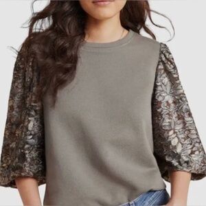 Anthropologie Amandi Floral Puff Sleeve Crewneck Sweatshirt