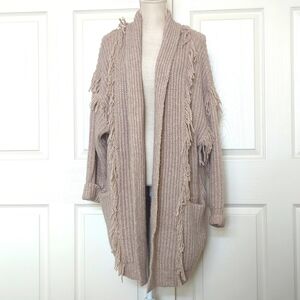 Anthropologie Amanza Fringed Cardigan Sweater Taupe
