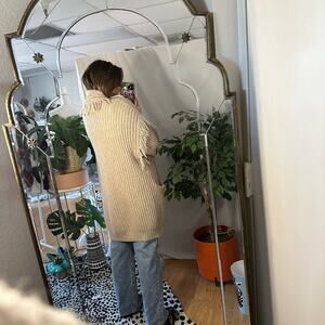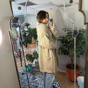 Anthropologie Amanza Oversized Fringed Open Front Cardigan Beige Size XS/S