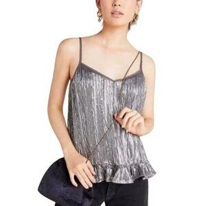 NWT Anthropologie Amelie Sequin Top. Double V-Neck Cami. Gray/Silver. Fully Lined. Adjustable Straps. NO TRADES.